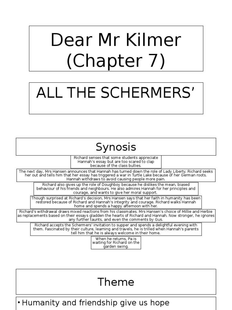 Kilmer is a famous poet who works for 'the new york times'. Dear mr kilmer chapter 2 1. Learn vocabulary, terms, and more with flashcards, games, and other study tools. What to upload to slideshare slideshare. Kilmer by anne schraff elements of the novel a.